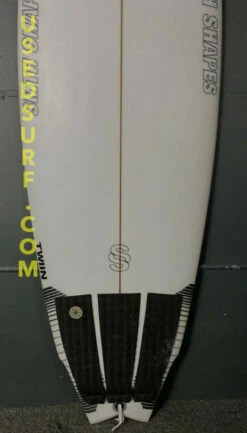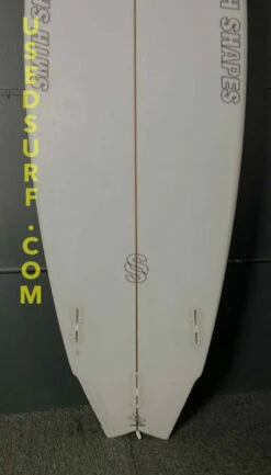 The bottom has very few all over pressures and a shallow depth overall with a crude repair and minimal small underglass shatters which are watertight. The nose and rails have small watertight surface scratches. The tail has a ting underglass watertight shatter on the right side. There is a repair on one of the fin boxes.