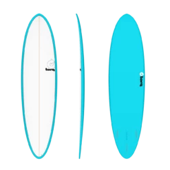 The bottom has very few all over pressures and a shallow depth overall with a crude repair and minimal small underglass shatters which are watertight. The nose and rails have small watertight surface scratches. The tail has a ting underglass watertight shatter on the right side. There is a repair on one of the fin boxes.